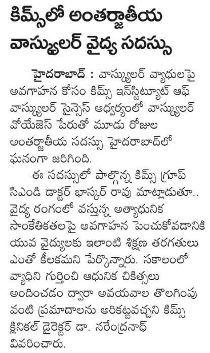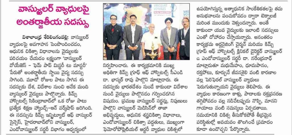 Dr. Narendranadh Meda, Organising Chairman and Clinical Director of Vascular and Endovascular Surgery at KIMS, highlighted the growing burden of peripheral vascular diseases. He noted that conditions such as diabetes, hypertension, smoking, and sedentary lifestyles are leading causes, often resulting in reduced blood flow to the legs, pain while walking, and non-healing wounds. If left untreated, severe cases may even require amputation.